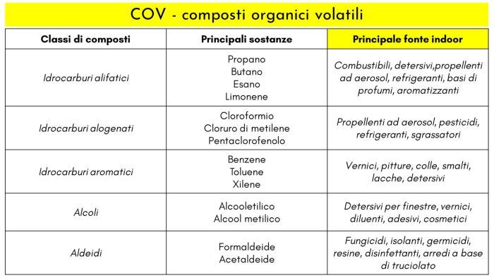 Vediamo insieme cosa sono i COV, composti organici volatili (in inglese VOC, volatile organic compounds), dove si trovano, cosa provocano e soprattutto come EVITARLI accuratamente.