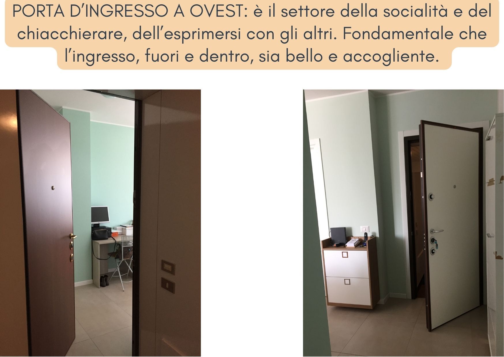 rendere molto accogliente l’ingresso, poiché è dalla porta che entra l’energia vitale (soldi, nutrimento a tutti i livelli, fisico ed emozionale, vitalità e persone)