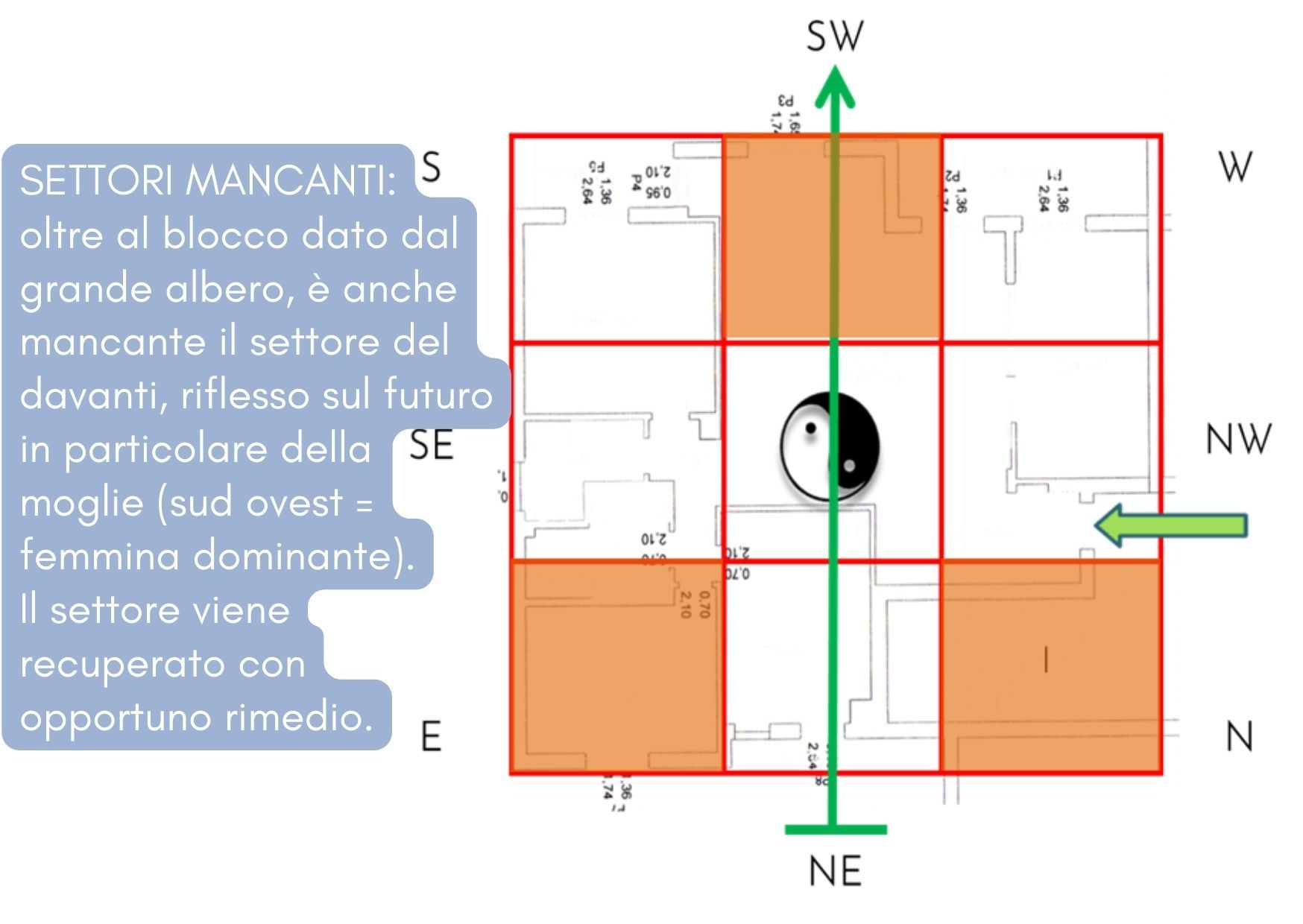 Gli altri interventi importanti sono stati l’integrazione dei settori mancanti tramite i tipici rimedi dello Stile Chue, che sono i Talismani. Soprattutto il ripristino del settore sud ovest, riflesso su Alice, è stato fondamentale per sbloccare il lavoro, cosa di cui ha giovato prima il marito (lavoro con una posizione migliore e più vicino a casa) e poi, con maggiore lentezza, Alice stessa.