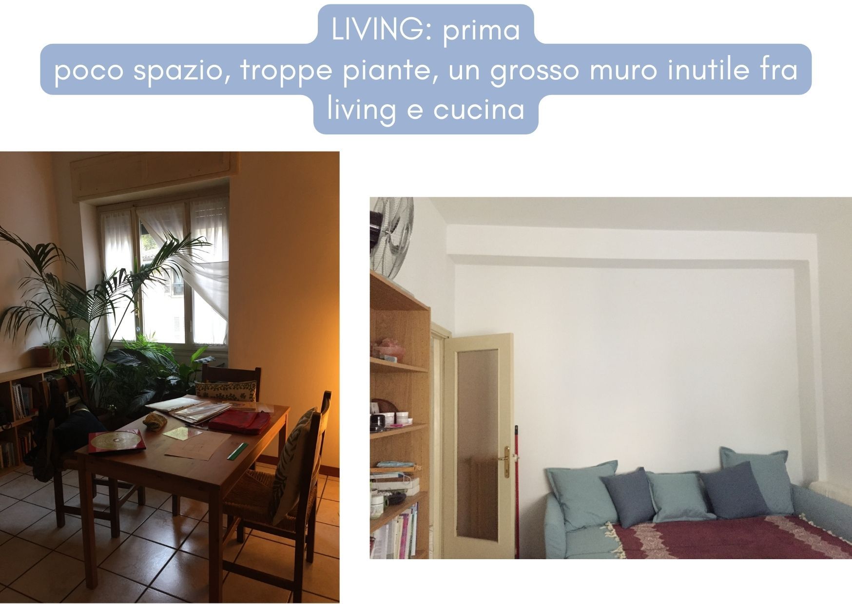 • eliminare la parete fra cucina e living per migliorare la vivibilità
